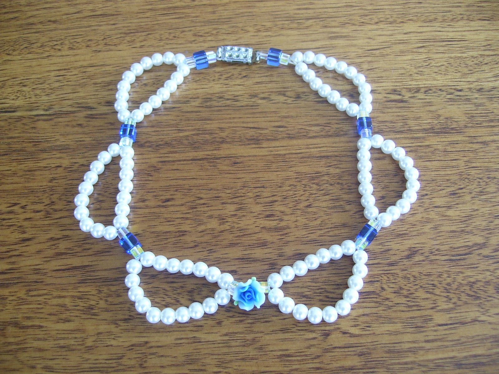 The glass pearl beads are from Lincraft, the glass square beads are from the Craft expo that’s at the Showgrounds each year, the clasp is from my Nana’s old jewelery stuff (separate from a necklace!), and a shout out to Lisa for that lovely Taiwanese rose bead.