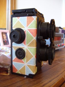 It is amazing that you made camera – it is not something a person makes every day. A camera is usually connected with a point of view, so through the creation of this camera, we can see through your lens…I like its symbolic quality. The colours on the outside texture is awesome and it adds another personal touch. 😀 The leather bag also complements the camera nicely. 😀