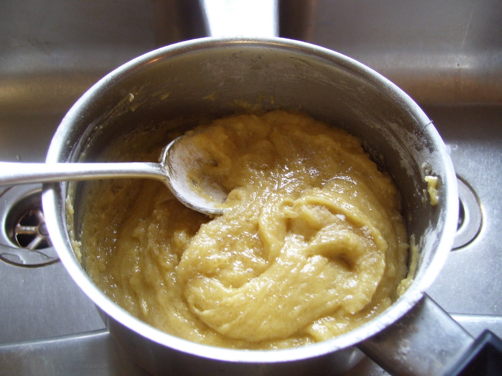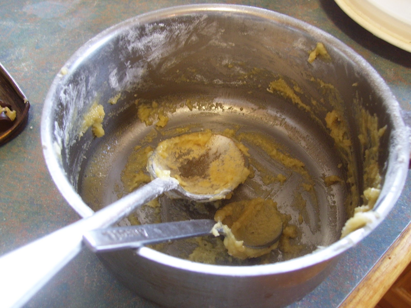6. Add flour and mix. Add more flour if it is too runny – it should hold its shape. Test for taste and add sugar if necessary.