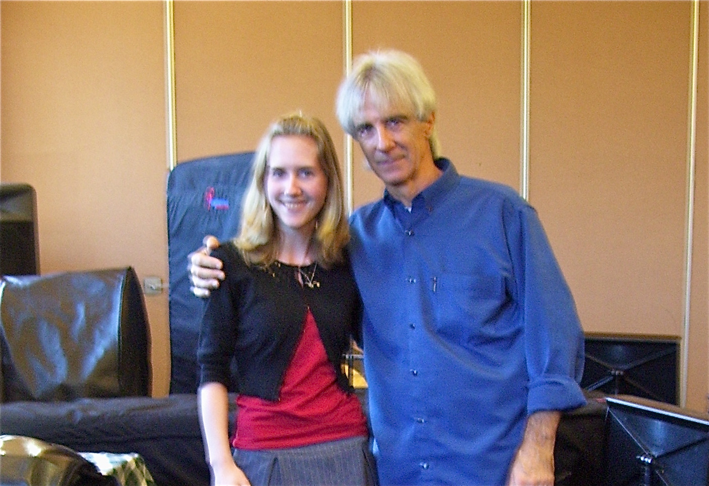 Here’s a lovely blurry photo of me and Ney Rosauro at the Percussion Eisteddford in 2009. See how long his arms are compared to mine? They’re like twice as long as mine. No wonder he puts so many big intervals in his piece.