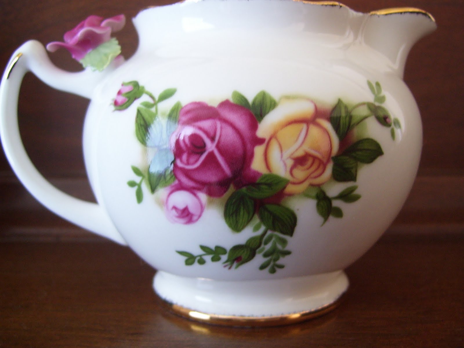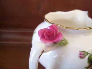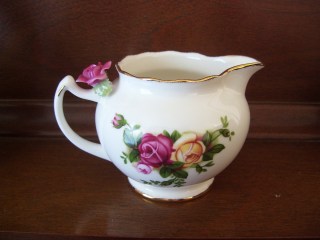 My mum is very fond of Royal Albert china.  This particular jug was released as part of the 100 Years of Royal Albert collectors items, and I think the print is called Country Roses.
