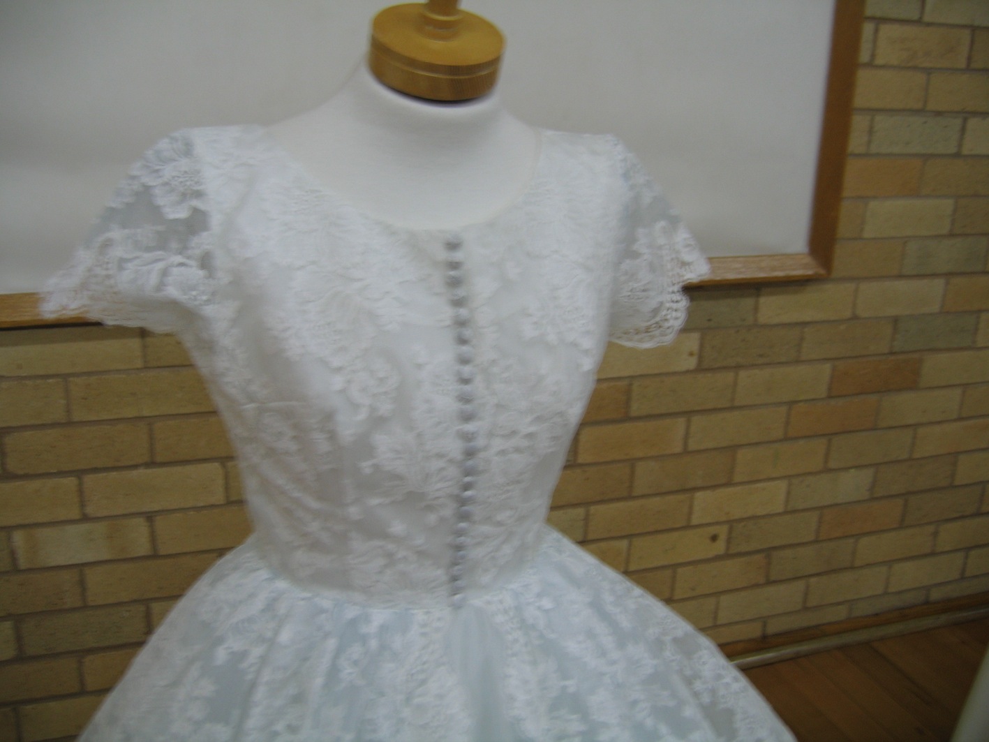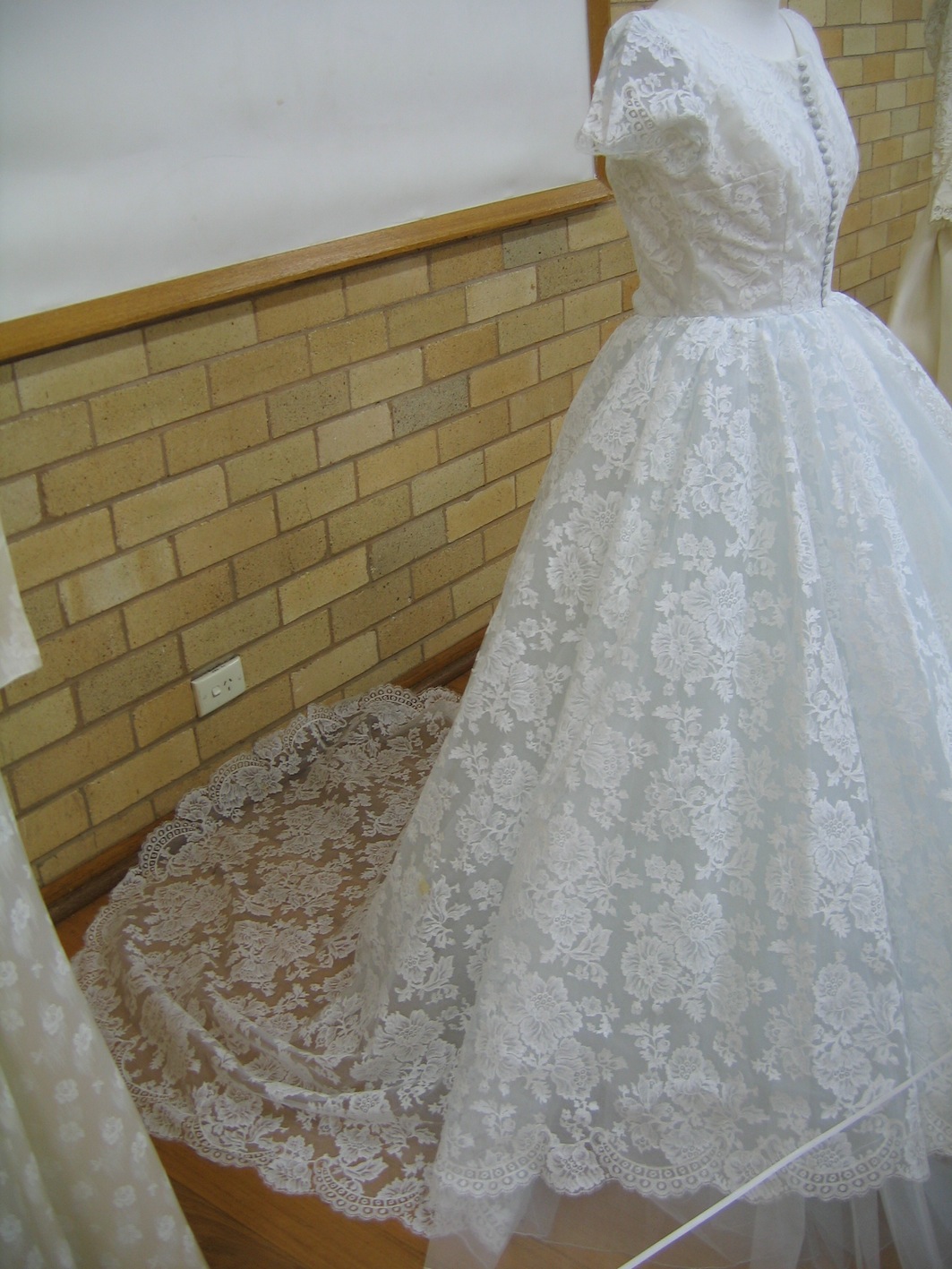 The following four photos are from a cute little exhibition held at my church last week. It was the Women’s Fellowship’s annual lunch party and they had a wedding dress exhibition with about 16 dresses. This was my absolute favourite, from the thirties! Sorry the photos are blurry, I didn’t use flash and was too excited to hold the camera still.