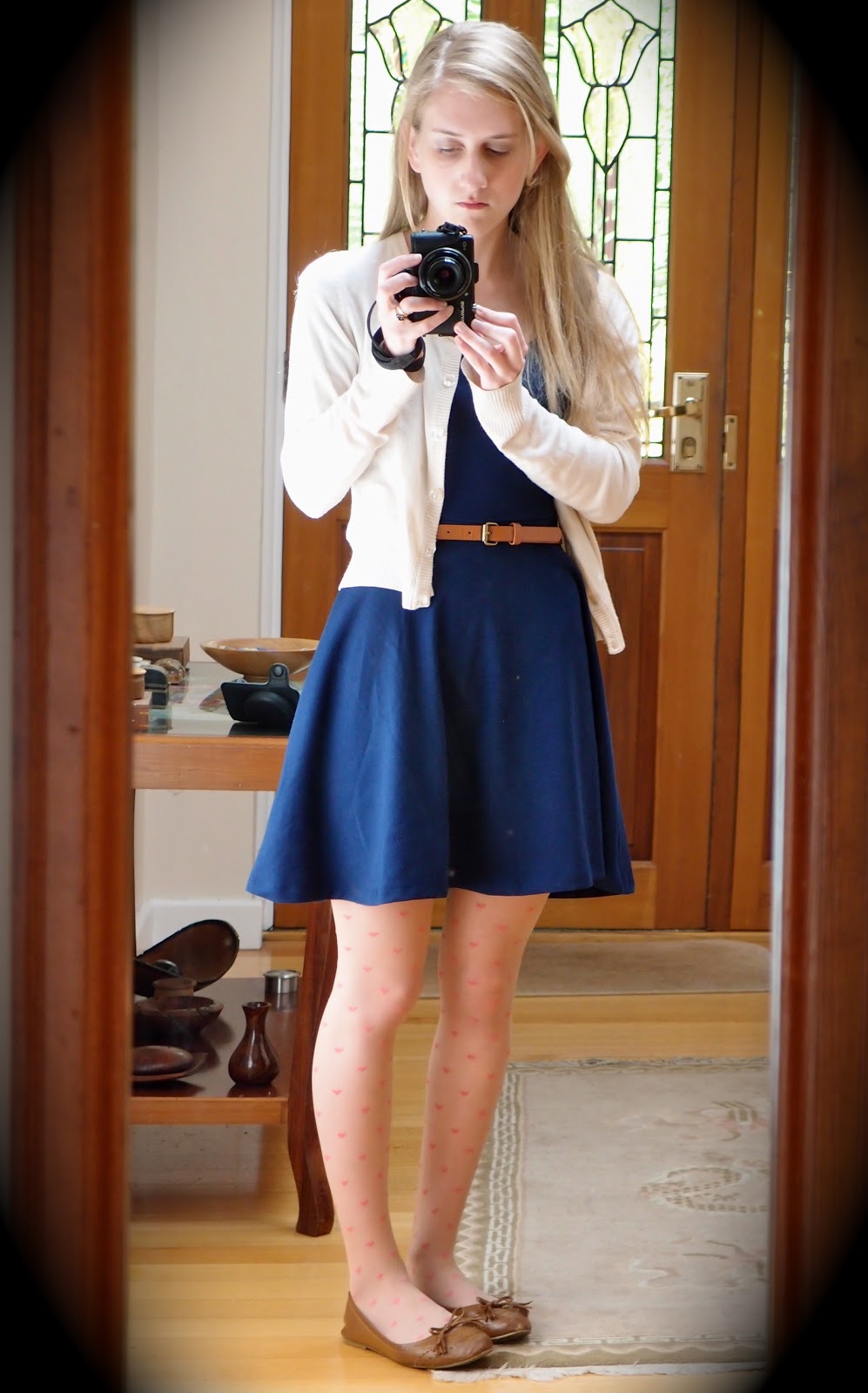 Then since the dress was strangling me, I changed into my Gilroy Garlic Dress! Much more comfy. The tights have little hearts on them and are from Forever 21.