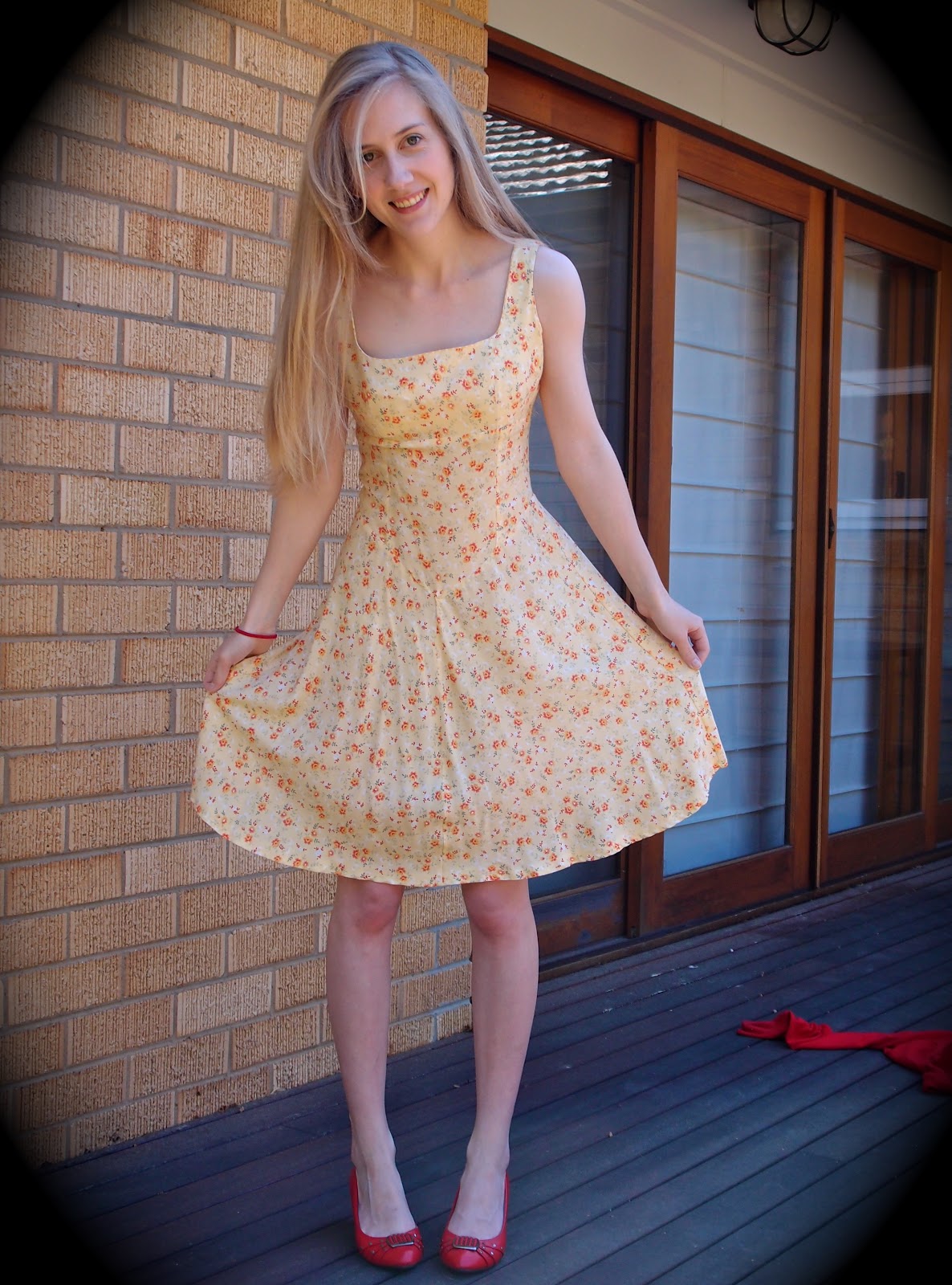 This dress I made back in January 2010! I haven’t worn it much because it’s too tight around my chest. I think I might cut off the bodice and make a skirt from it. Here’s the original post form when I made it!
