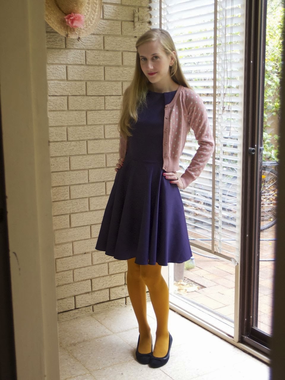 Because it’s such a bad photo of this morning, here’s another one from when I got the dress. Still with a cardigan! But much sassier and less like “oh god why is it so early”