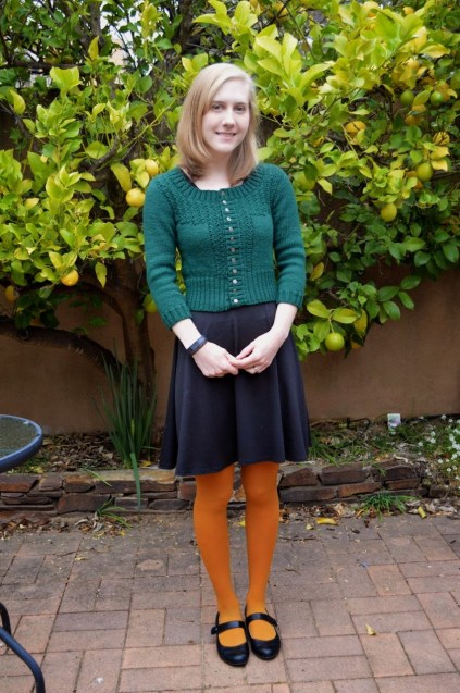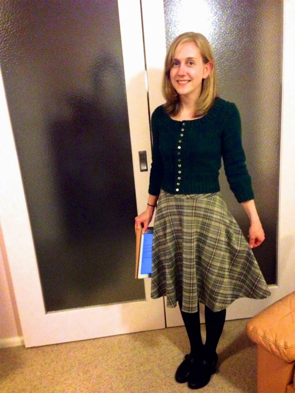 Sorry for the dark picture. Today was my Milena cardigan and my tartan stretch skirt. The zip is kind of weird in that skirt and I need to fix it, but I wore it anyway!
