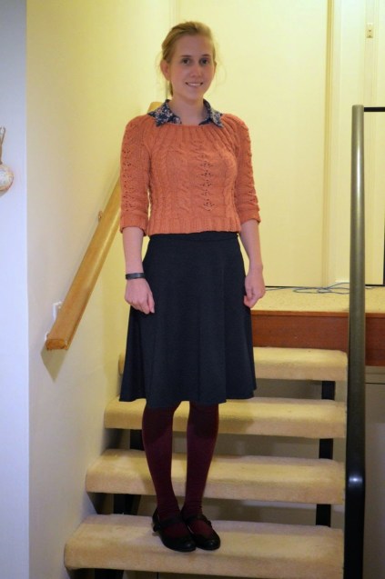 To teach today I wore my half-circle skirt (I haven’t worn it since I made it nearly 2 years ago) and my Amber Bramble jumper.