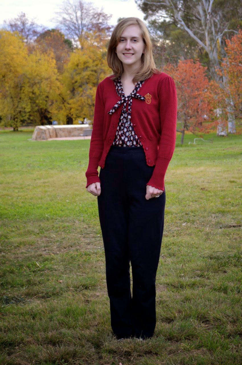 Finally a day off! I wore my black ponte pants and my owls blouse. Those pants are starting to pill already, terrible Lincraft ponte!