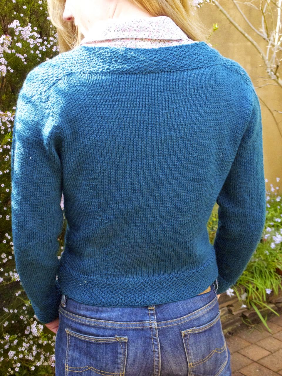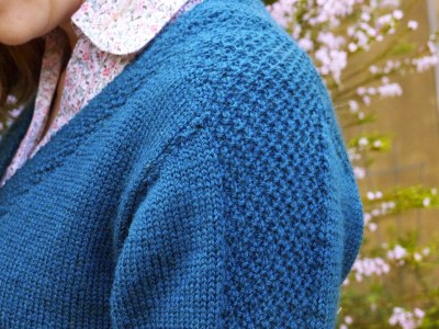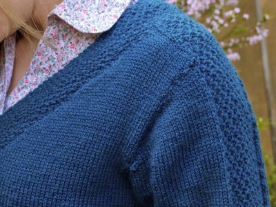 You can see clearly here how the moss stitch goes across the shoulder, continuing down the sleeves.