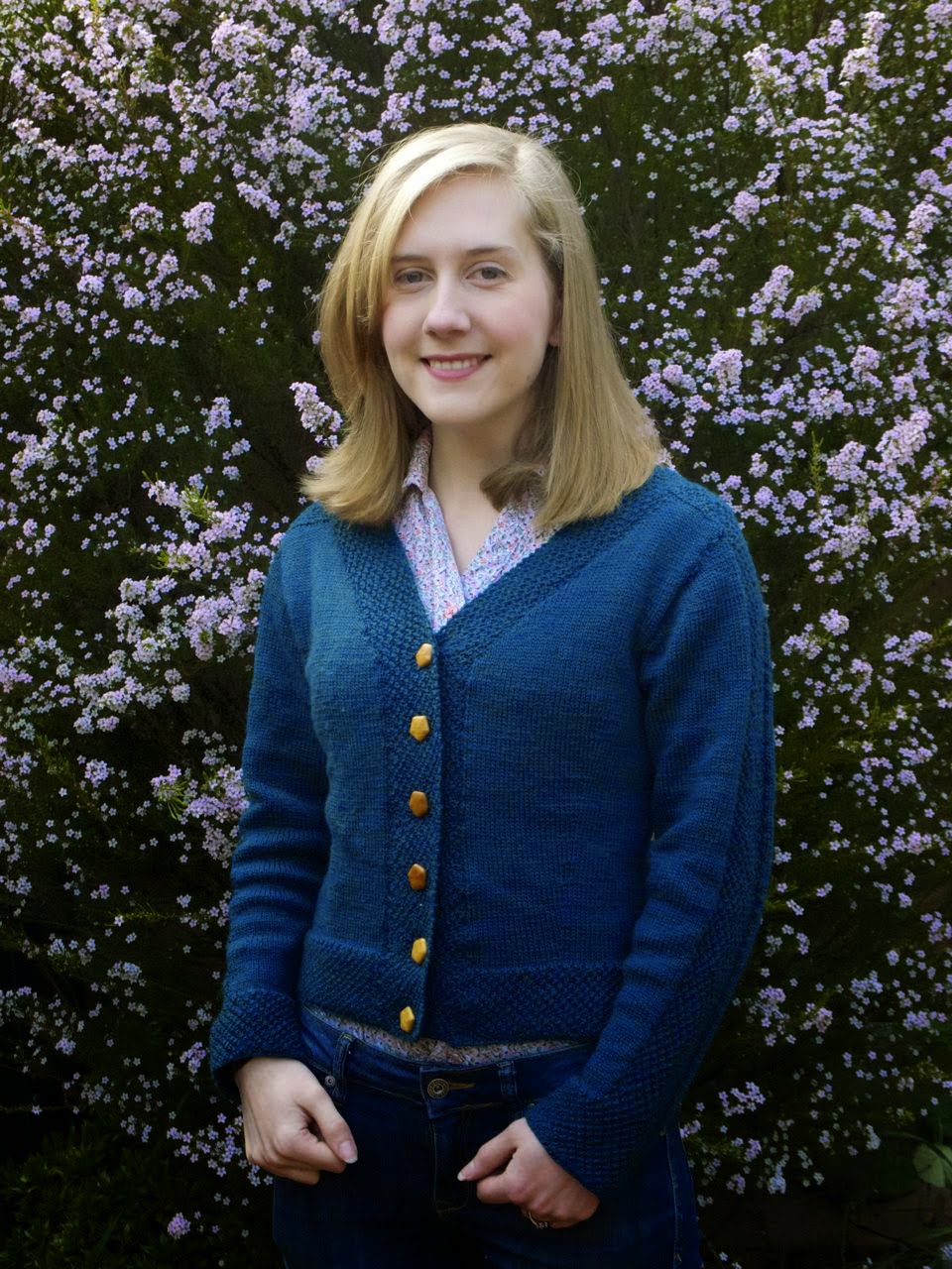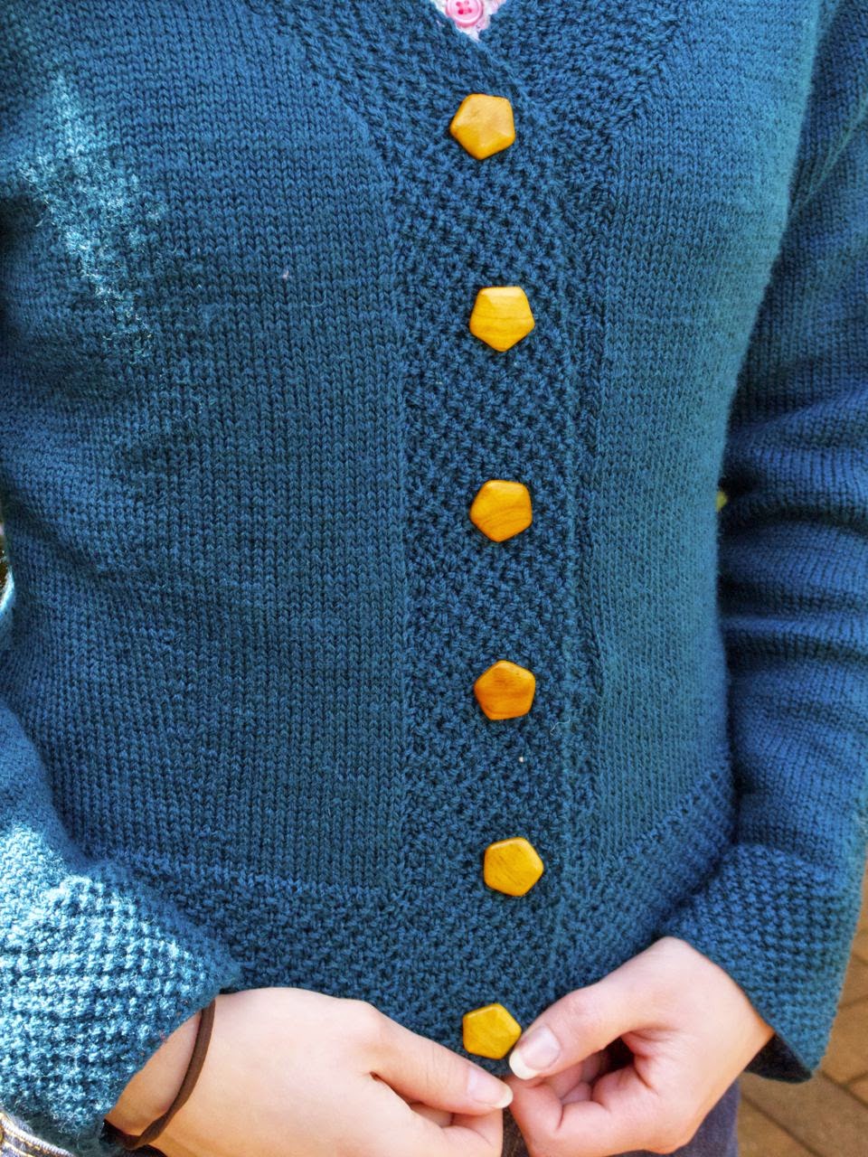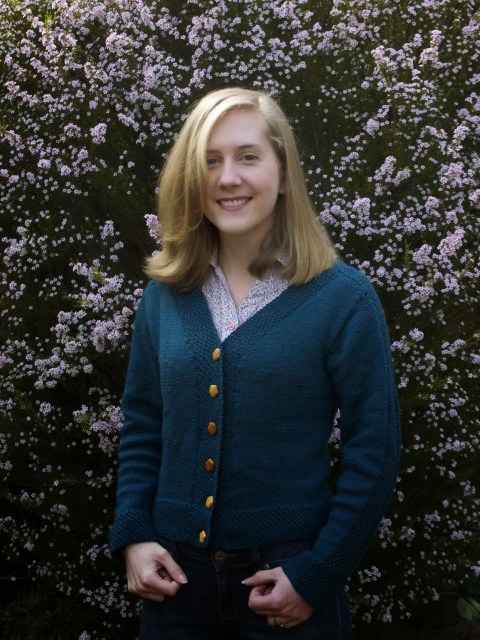 I have been working on this for some time now, but I am happy to present my new teal cardigan!