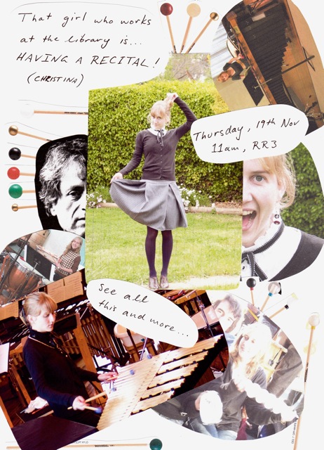 Christina Hopgood is a self-employed musician and music teacher, specialising in percussion with ten years experience as a professional performer. For the past six years, she has taught around 30 students across two schools in Canberra, Australia. Christina’s specialty is performance as a ragtime xylophone soloist but she has also played with various bands, orchestras and new music ensembles across the world. Christina has a double-degree in Music (Performance) and Science (Psychology) from the Australian National University, where she achieved First Class Honours in Music in 2011. She has won two projects grants from ArtsACT (local government) in 2010 and 2011 to attend specialty training in the USA and to perform and collaborate with percussionists in Sweden.