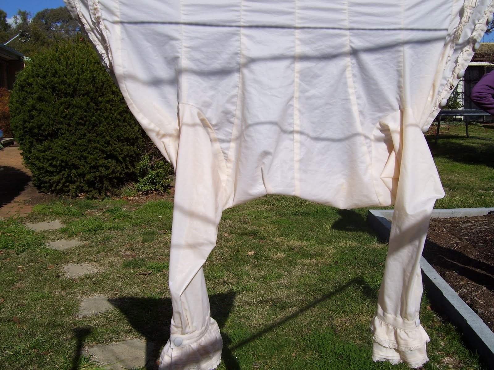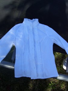 I found that it was tight across my upper bust and it was uncomfortable. There’s an inverted box pleat that’s sewn in all the way down the front, so I unpicked some of the pleat at the bustline and instead made two lines of stitching on either side of the opening. I re-pressed the pleat which got a little mucked up and now it looks just the same as before. I’ve tried to show it here but it’s hard on such busy fabric! The modification worked well and now I have some movement in the bust to allow for, you know, breathing.