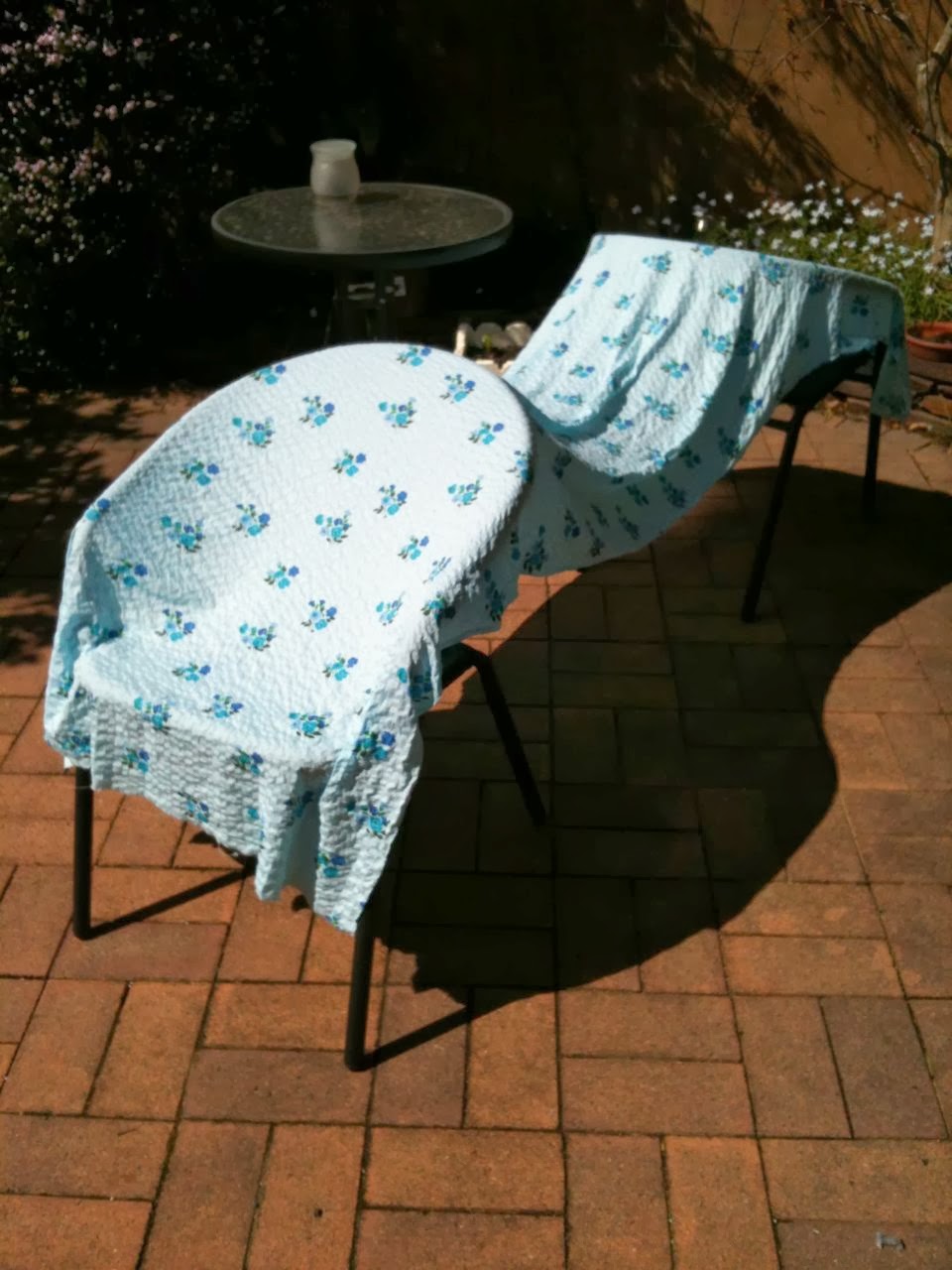 My toile worked out pretty well, a shame it was a) covered in paint, and b) completely see-through. It had a pretty pink floral pattern, very subtle.
