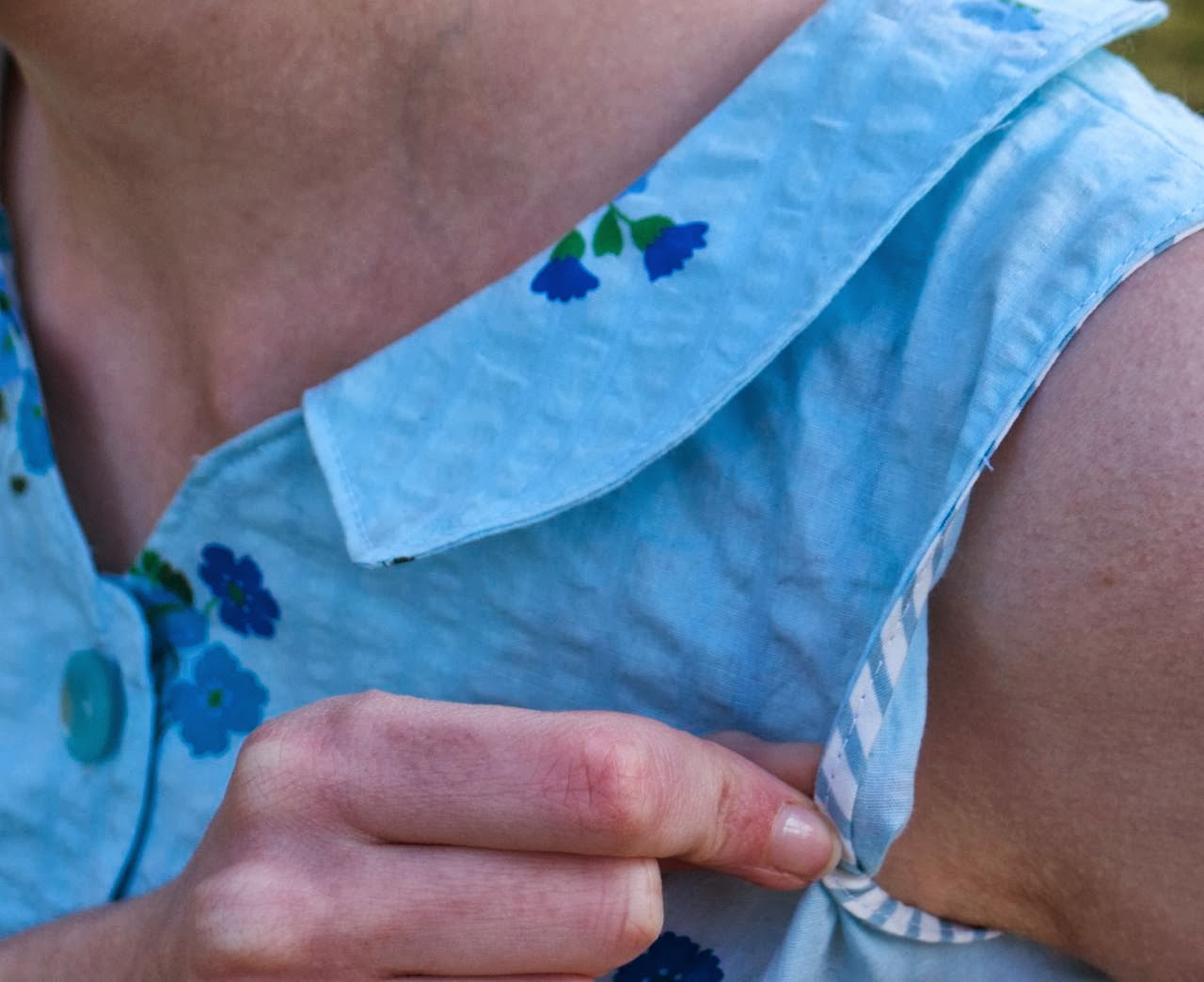 My fabric is a lightweight seersucker which is a vintage gift from a church friend. She was getting rid of lots of fabric she hadn’t used in 30 years. I only had about 2 metres!