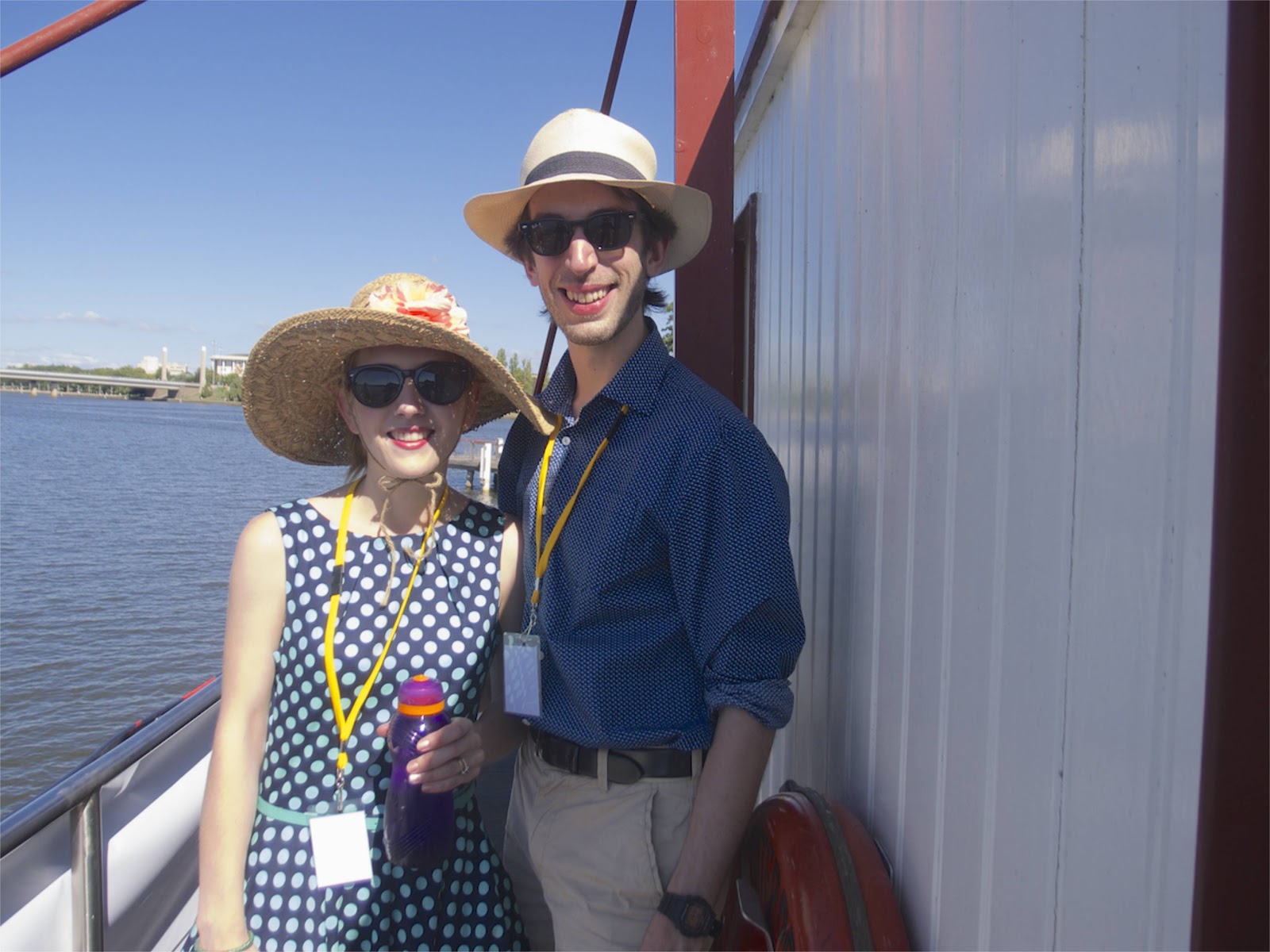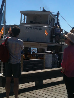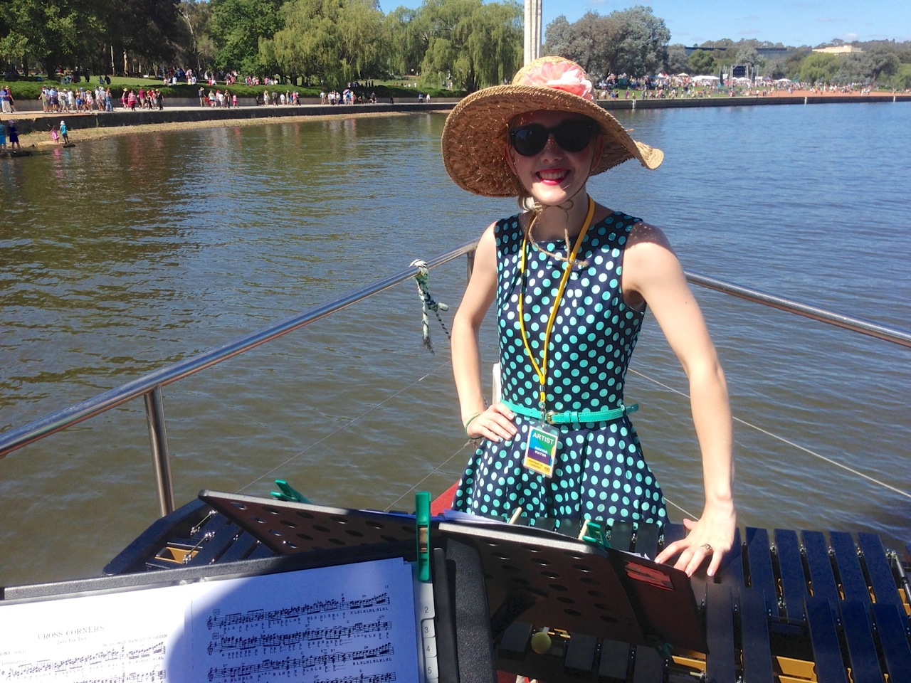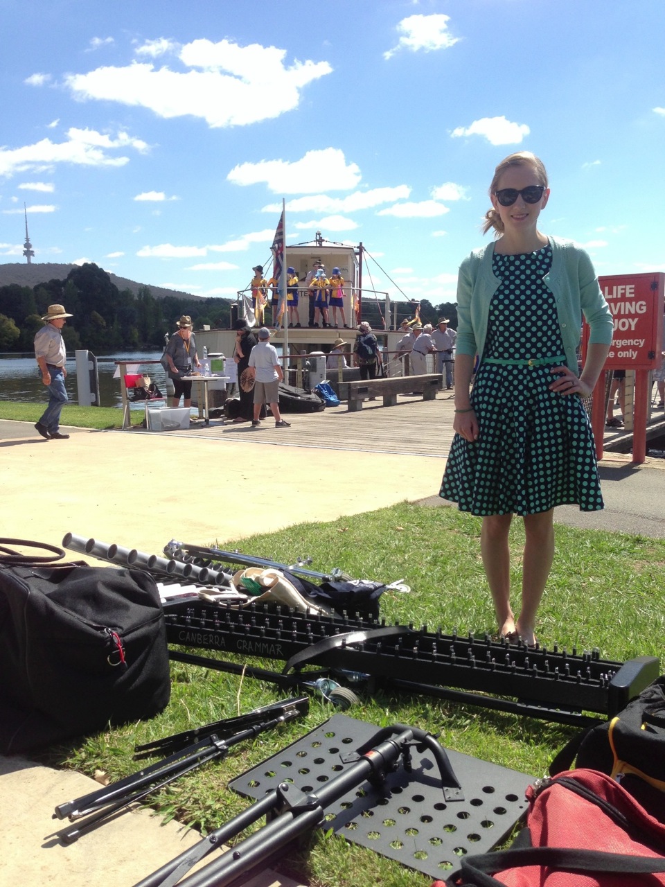 We had a really amazing time going around the lake. Everyone was really appreciative and we were applauded all the way around. Finally, a gig where people showed up! There were literally thousands of people! And everyone on the shore seemed to be having a really good time. There were lots of activities going on. Canberra’s lake has an enormous fountain that goes hundreds of metres into the air, and when we went past that it was quite distracting! It was also distracting when we saw some friends on the shore!