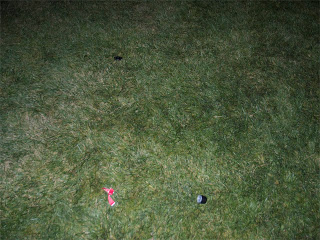 I took 5 photos of grass before finding something that looked a little like a lens cap – a little black dot on the ground.