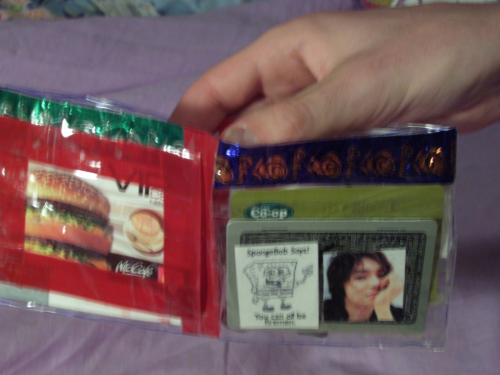 This picture (sort of) shows it with some cards in it. This was when I was like 17 so I probably didn’t even have a licence. But I did have a library card and a McDonald’s voucher!