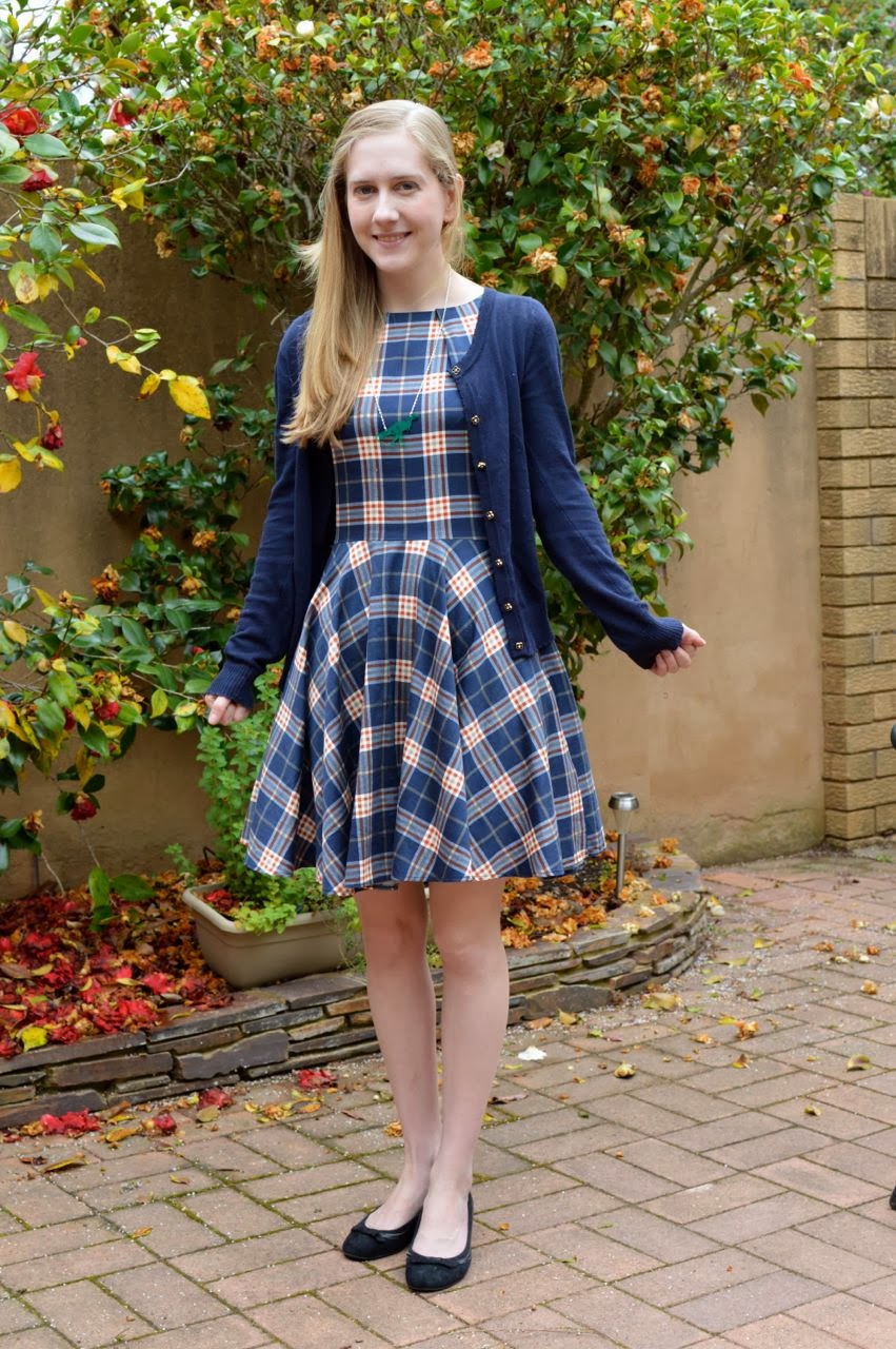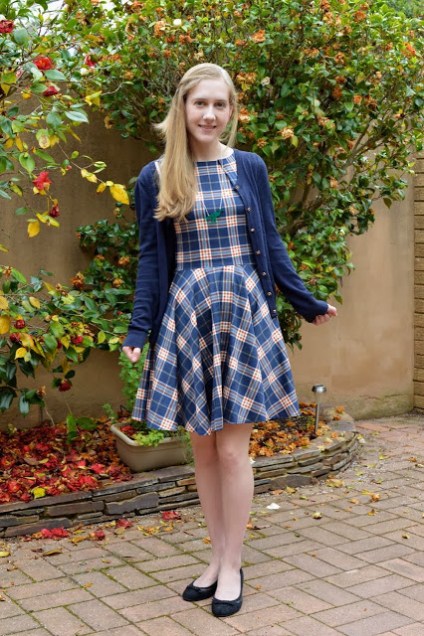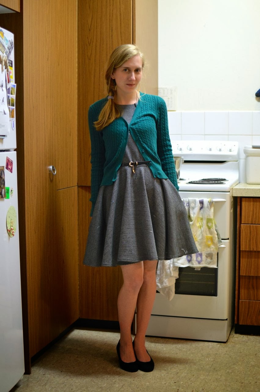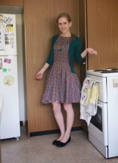 This dress is – you guessed it – another Luck Be A Lady dress. This is probably my most-worn one, it has so many colours (mostly purples, but also coral, yellow, and blue) and goes with a lot of different tights and cardigans. Today it was cool in the morning and then got super hot and now it’s pouring with rain! SPRING WEATHER, LADIES AND GENTLEMEN.