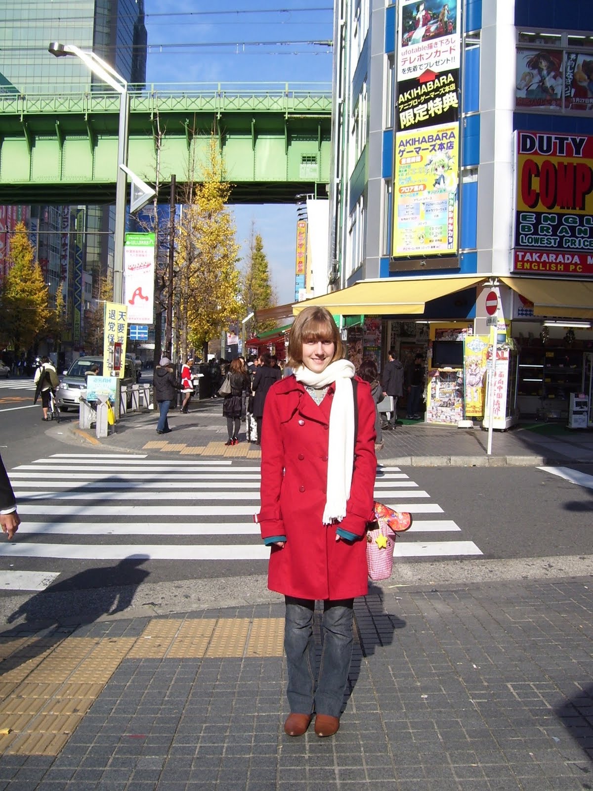 I spent a good hour and a half in the shop, because I wanted to be sure about my purchases. When I bought them, the girl also put two postcards and a lovely VM phone strap in the bag too. She told me they were presents and we had a small conversation. Charles told me later that she’d been writing me a postcard every time I was in the changeroom (often) using a little translator which beeped (I had been wondering about the beeping) and she’d asked him which colour phone strap I’d prefer. Then Charles took a photo of her and I together in the part of the shop where photography was allowed. She told me I was cute! The cutest girl in Japan told me I’m cute! I didn’t stop smiling all day.