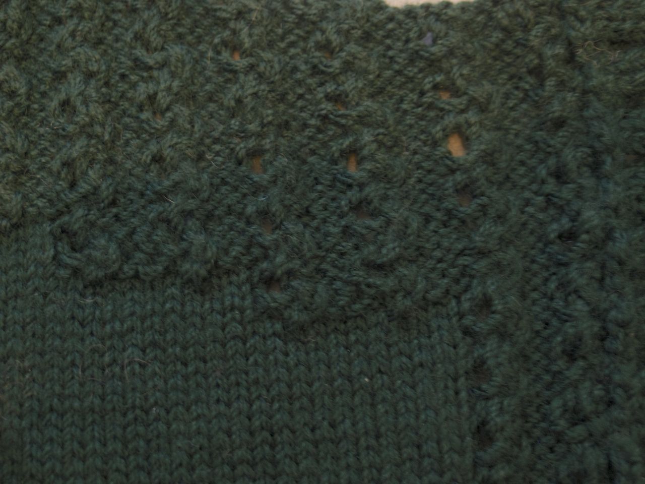 Trying to get a closeup of the lace pattern… it’s a pretty interesting one! Mine came out a little more dense than the original, because it’s a thicker wool while the original was cotton.