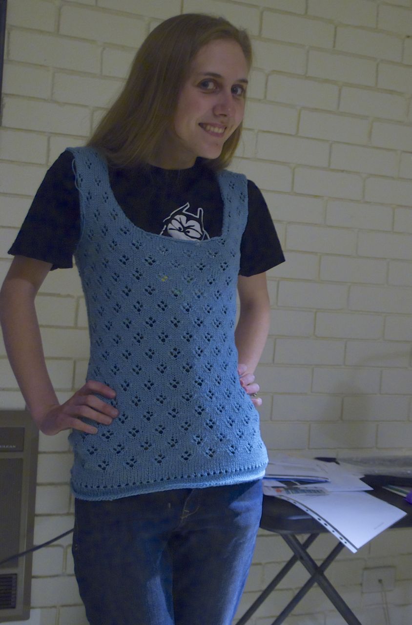 I made a long-sleeved version of this jumper, instead of the cap sleeves in the pattern. To do this, I just cast on 34 stitches instead of 58, and gradually increased up my arm. I was worried they were going to be a little long but they turned out just fine.