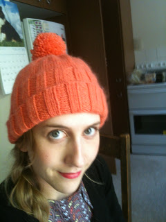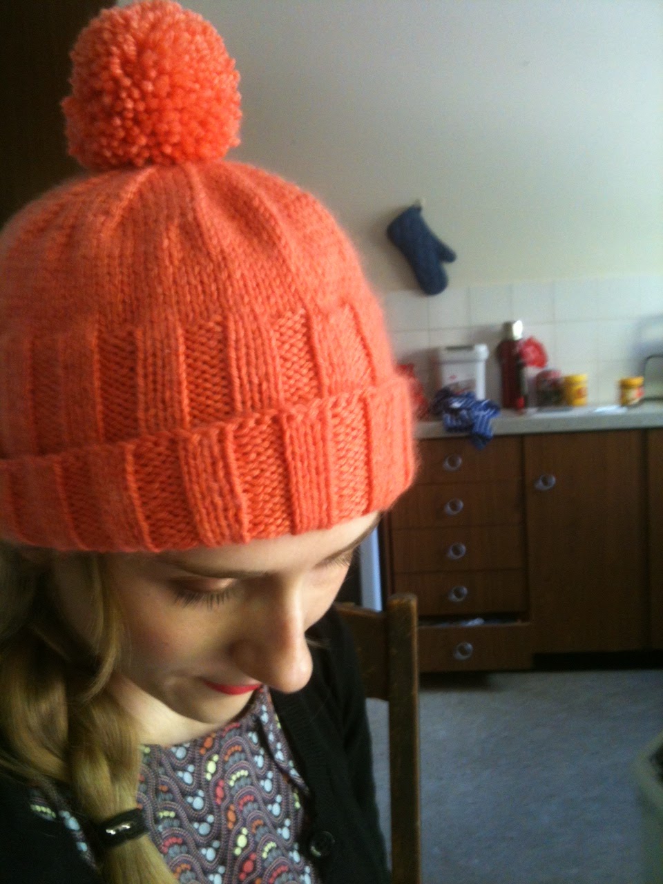 To make up, press and join back seam with remaining yarn (I used a crochet hook). Fold ribbing in half to right side, or wear as desired. You can also make a pompon for extra cute.
