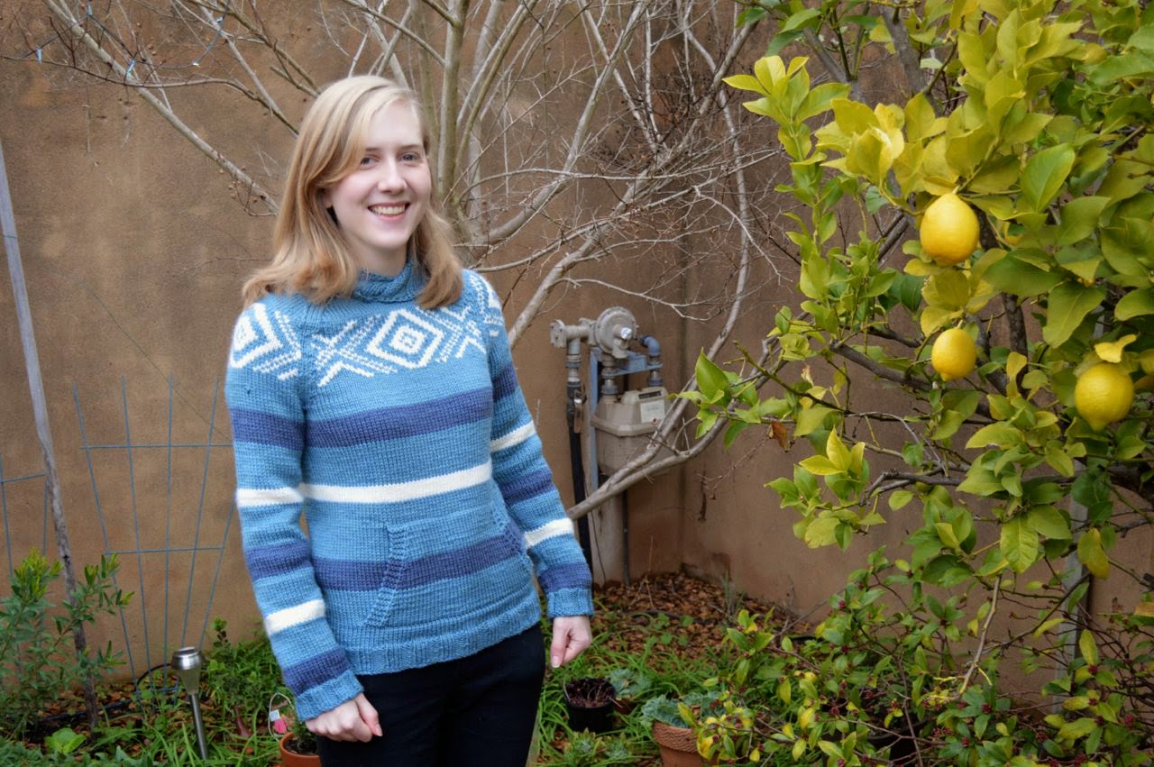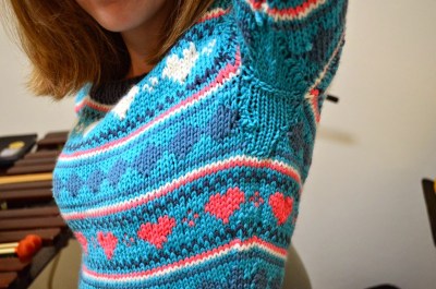 You’ll need some nice 8 ply (worsted weight) yarn (I used a bit less than 2 50g skeins), and some 3.25mm needles (UK size 10, or US size 3), and 4mm needles (UK size 8, or US size 6).