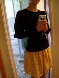 See? Puffed. Lame photo quality, but it’s usually dark when I want to take photos, and also… I’m kind of embarrassed asking my parents to take photos of me in stuff I make. So self-portraits all the way! Parents don’t understand blogging.