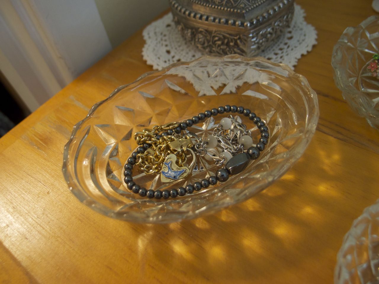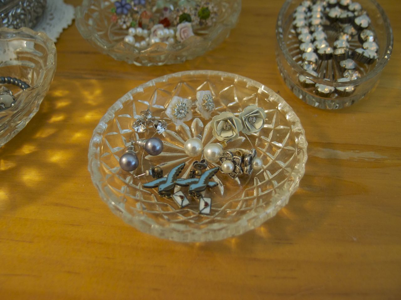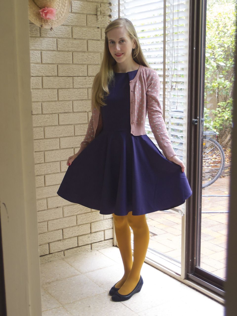 The cute birdies on the fabric. From far away it just looks like a spotty pattern!