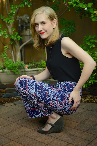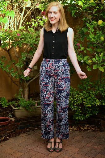 So the fit now is *okay*, not perfect. I still have some gaping at the waist and it’s still really tight across my bottom. I will have to look carefully at the pattern and make some alterations for next time. I also have one twisty leg – must have cut it slightly off grain.