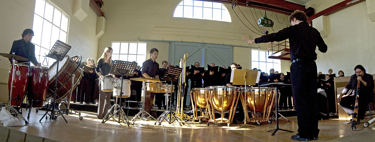 It’s a piece with lots of instruments: 3 marimbas, 2 xylophones, vibraphone, 4 pianos, 4 singers, 2 bass clarinets, a violin and a cello. It’s a minimalist piece with not much in the way of melody, so I would call it a sound work rather than a regular instrumental piece. It’s exploring the different sounds that the combinations of instruments and harmonies can create, in a very repetitive and mesmerising way.