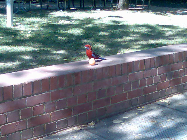 A birdy eating an apple at ANU.  A guy asked me if I was a photographer after taking this. I am not.