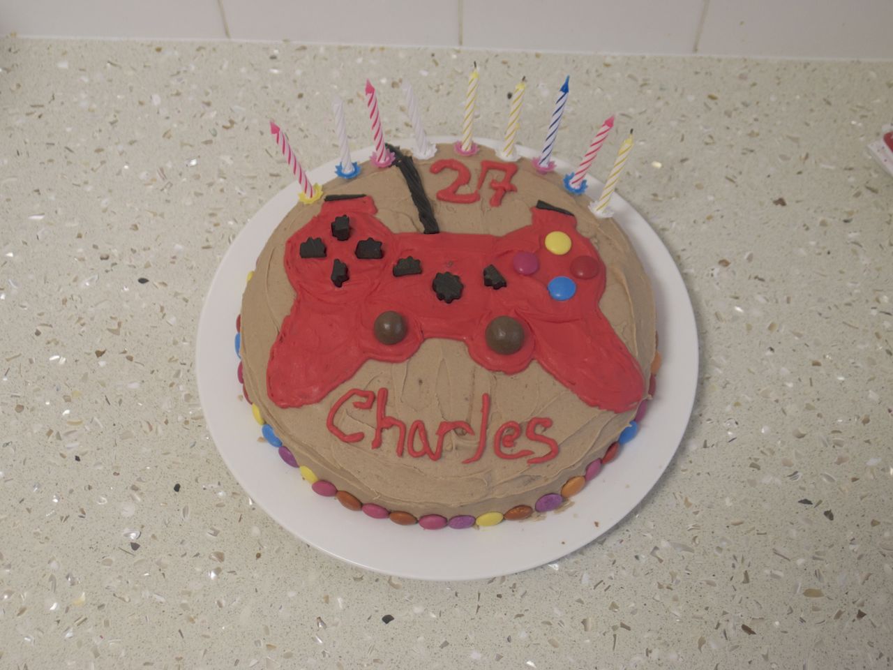 I made him a PS3 controller cake because I got him a PS3 for his birthday!