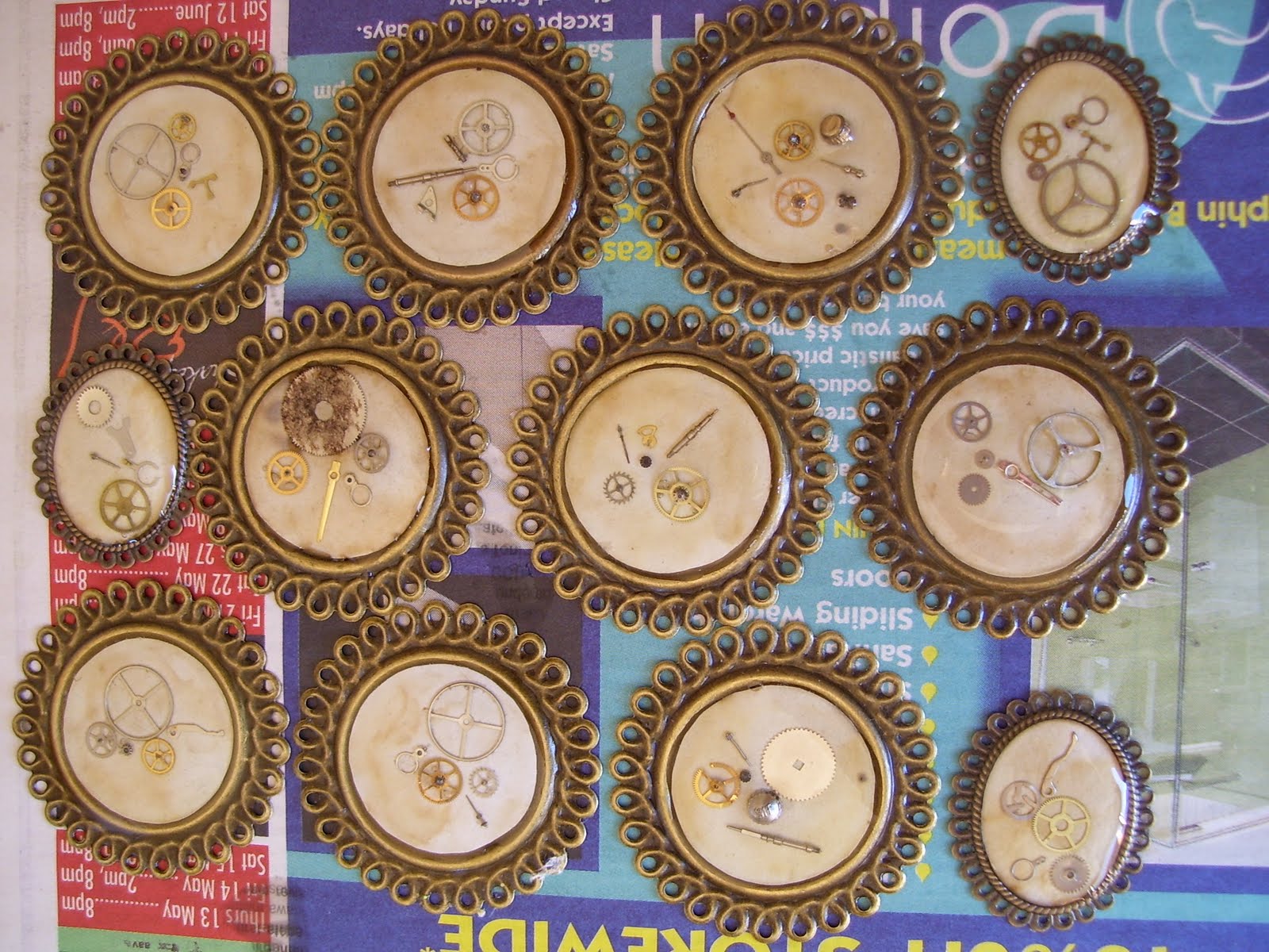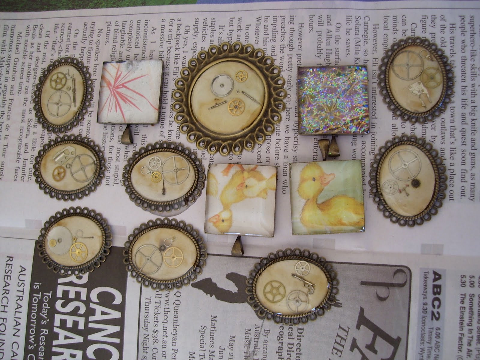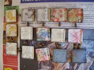 I started making these pendants about a week ago, and they’re only just set. Resin takes ages sometimes.