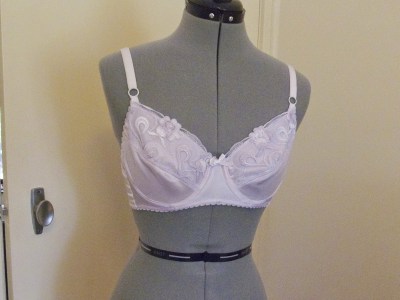 Here’s a photo of the bra inside out so you can see some of the inside workings. The seam in the middle of the cups could be irritating to sensitive people but mine is fine. I just sewed the seam allowance down close to the edge. It’s not like it rubs, bras are supposed to stay put!