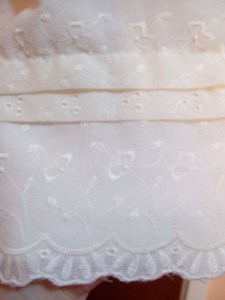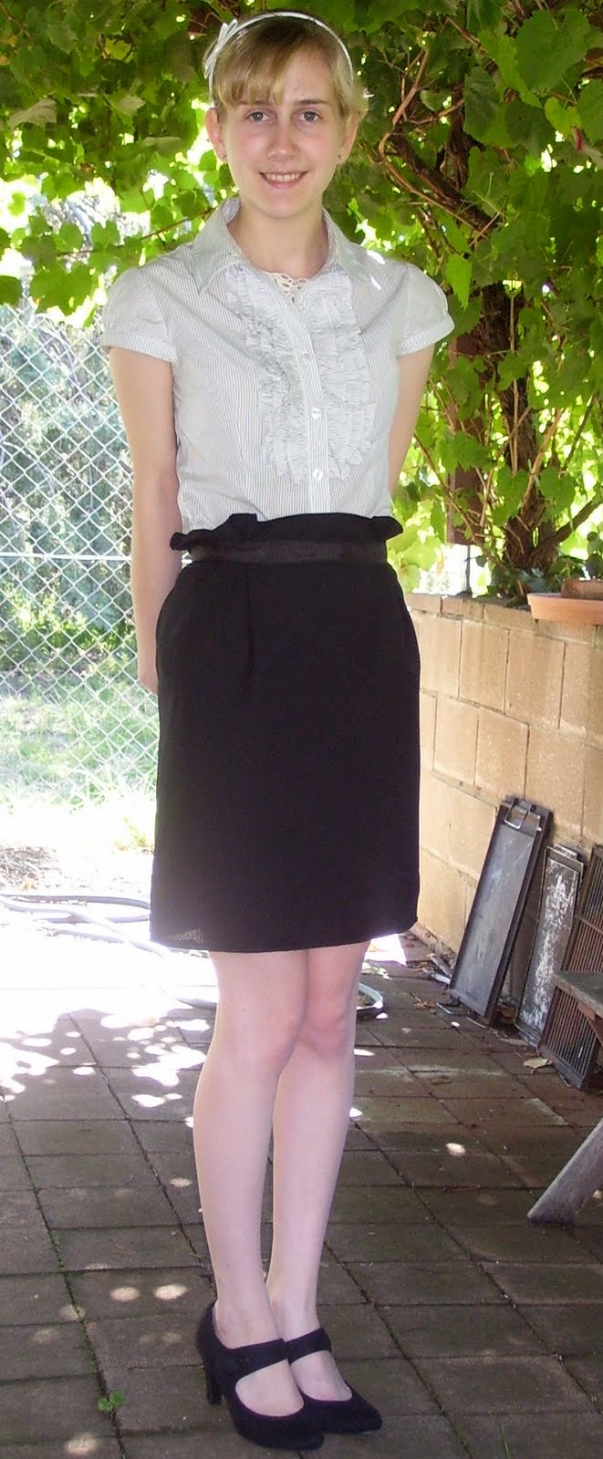 This is an R-Series blouse that I bought from Qutieland a couple of years ago. Quite nice, right? I thought so too, for a few months. The fabric is an interesting texture which I like, ribbon and lace collar is cute, the buttons are nice, and it’s a good fit. However! It’s really short! Observe how the shirt curves up over the hips of the mannequin. This means that you can only really wear this with a high-waisted skirt. I like wearing jeans sometimes, and this looks really good with jeans, except you have to wear another top to cover the gap between top of jeans and bottom of blouse. The other problem is that it looks kind of schoolgirl-ish. I’m 23, and I don’t want to look like a schoolgirl. Changing the ribbon might help.