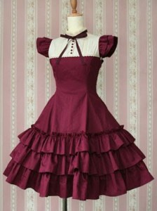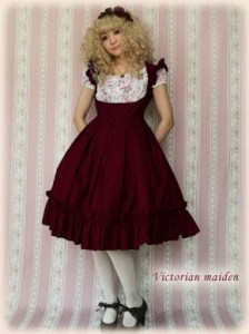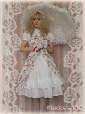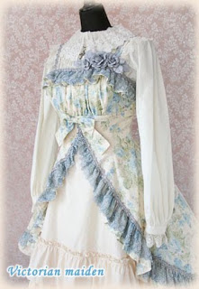 At the VM shop, there was a small ante-chamber where there was a mannequin and some bits and brochures. The main room had several racks of clothes, two small tables and a display cabinet with beautiful hair things and jewellery and ornaments, a fitting room, and the soundtrack was Easy Piano Duets (a book I know well). Frilly parasols adorned every other place. Everything was old-fashioned and pretty. The shop girl was extremely cute and helpful, although she couldn’t speak a word of English. I tried on lots of clothes, many were too big for me. Every time I was interested in a dress she went and got a different colour for me in case I was interested. She was most helpful!