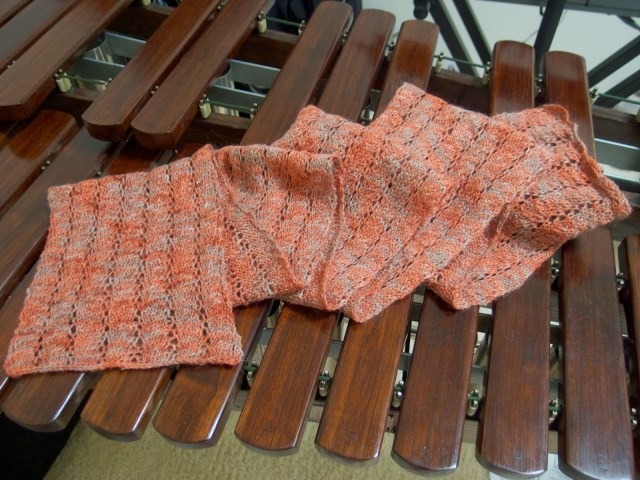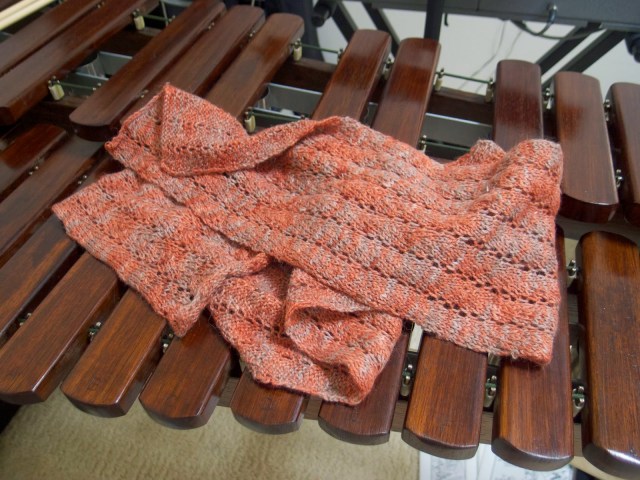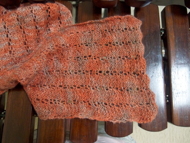 The “chevron” is a little hard to see actually, but the K2togs make little chevrons if you look at it the right way.